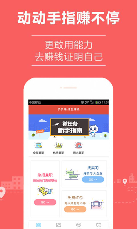 1、【手机下载领现金】 每完成任务有现金奖励 多多赚精选优质任务,边玩边赚零花钱;
