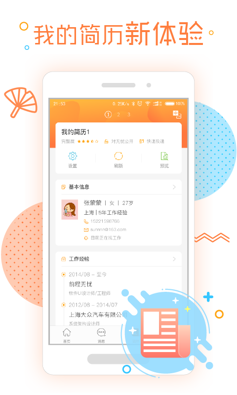 3、【简历中心】刷新简历,让HR优先看到你,找工作快人一步