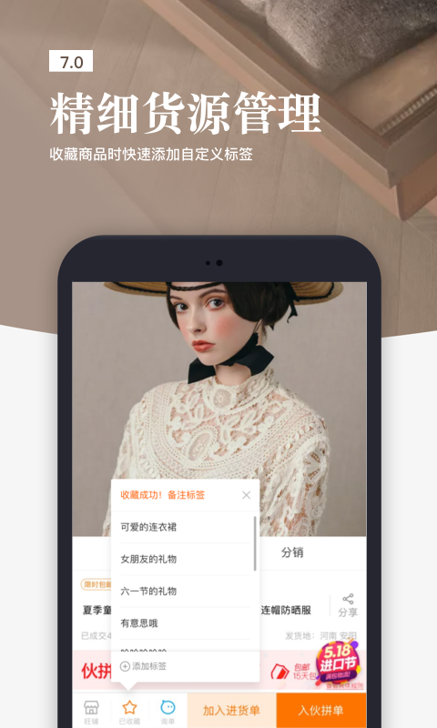 2、货源管理:在商品详情页收藏商品时可快捷添加自定义标签;在收藏夹可以快捷查看和领取商家定向邀约给买家的会员卡和优惠券;足迹零丢失率升级的同时提高同步速度到秒级。