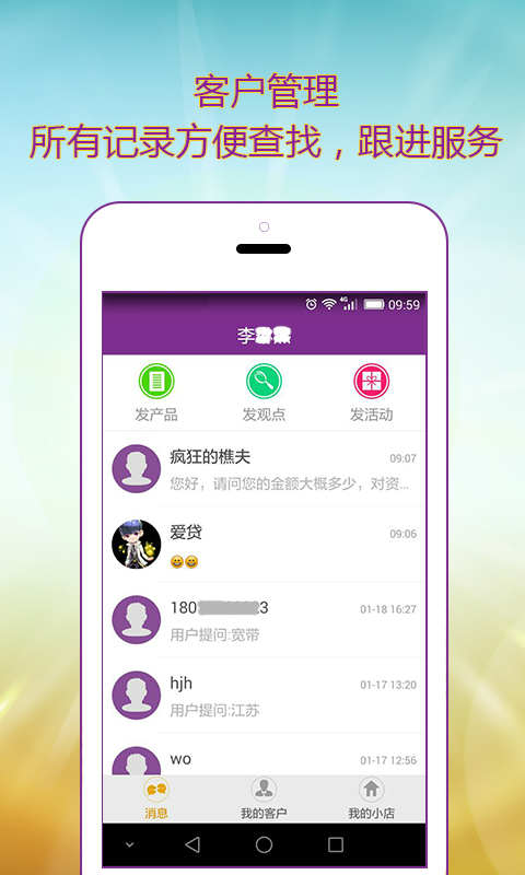 1、金融小店,自主添加管理小店产品供投资者对比挑选,通过线上沟通与投资者达成理财意向
