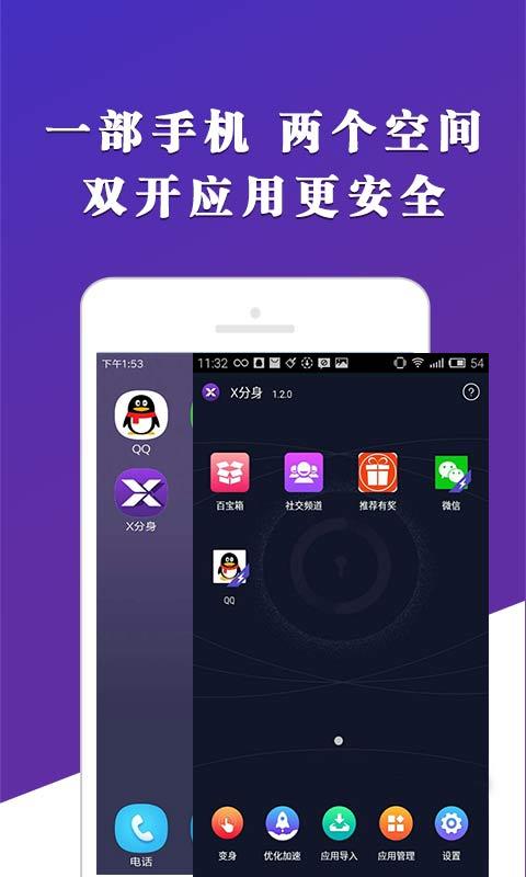 X分身双开应用兼保护手机隐私更加稳定,安全,放心!