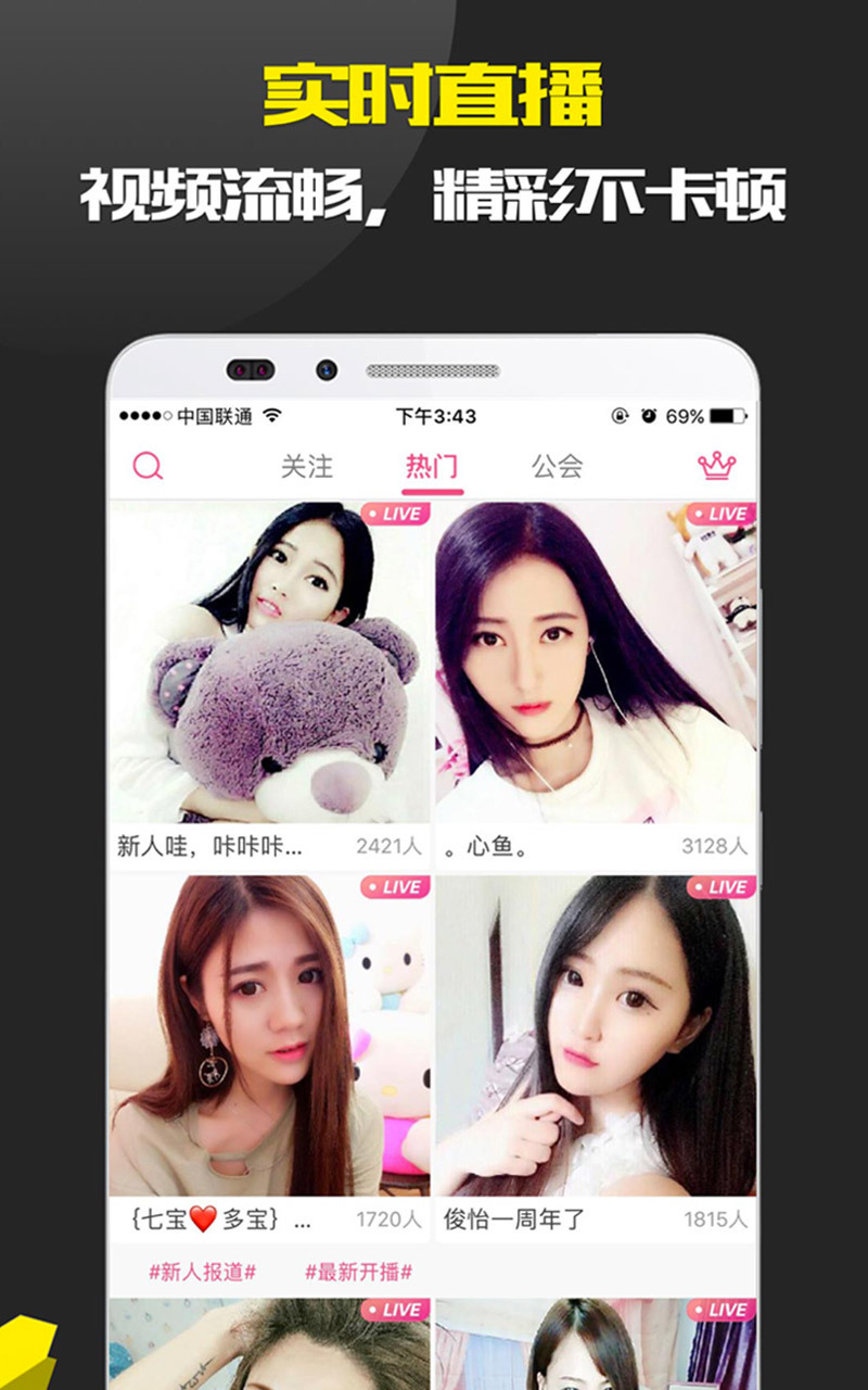 1、看直播,与美眉互动,随时观看主播高清才艺秀;
