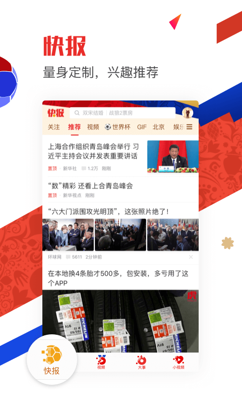 无论是国内外要闻、头条八卦、精彩直播、火爆赛事,还是各类段子、福利美图、养生知识、减肥宝典……快报帮你一网打尽,致力让你成为朋友圈最有趣、最有范儿的话题领袖。