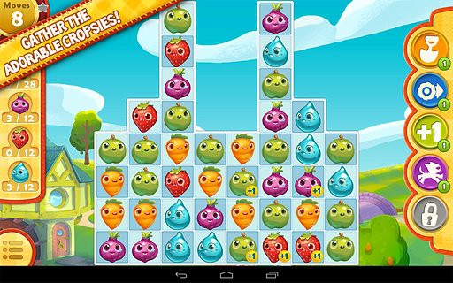开关和匹配三个或更多的可爱cropsies驾驶馊了的好!一个farmtastic冒险充满了混合水果疯狂! Scrummy !