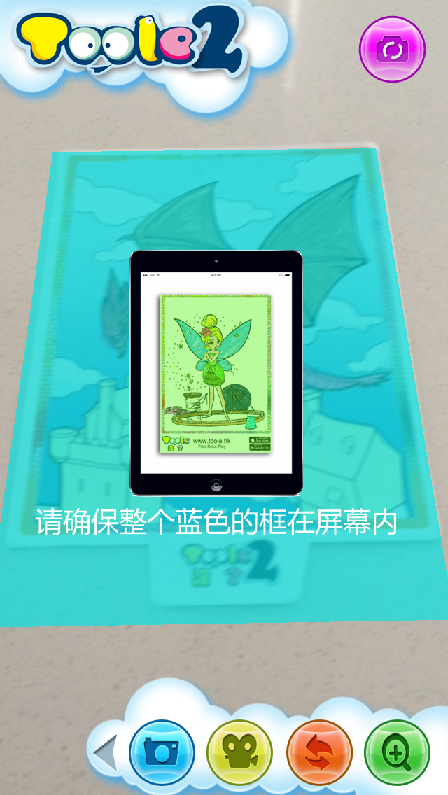 toole2是一款儿童AR类互动涂色早教产品,孩子通过涂色获得不同的产品,在软件中可以得到所涂物体的3D,可以和对应的产品进行合影,进行游戏互动。