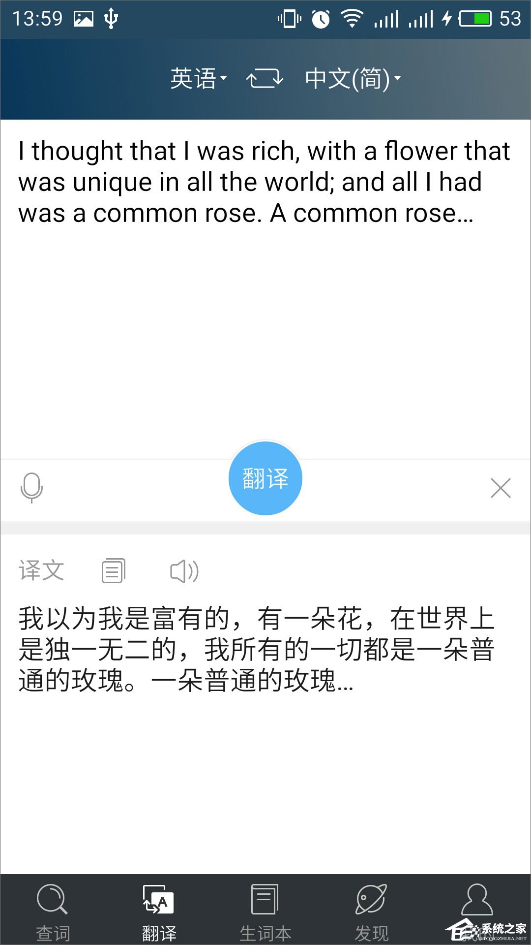 输入一句长句,点击翻译即可。支持中、英、法、韩、日等多国语言的互译(遇到不会拼写的单词,也可以使用录音功能);