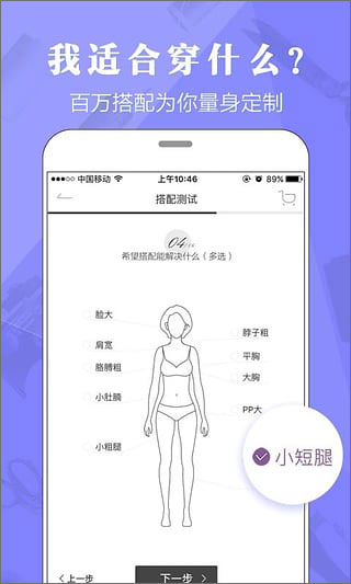 1、定制搭配、专业身形偏好测试,给你更专业的穿衣建议!