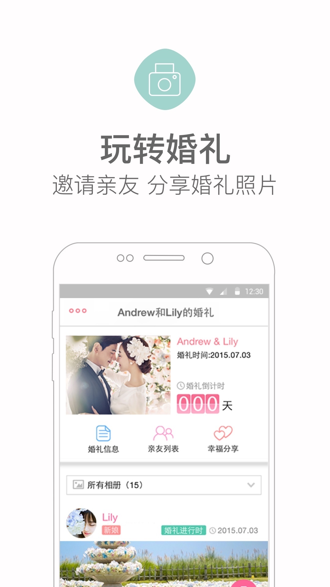 新人邀请亲友,和亲友一起记录婚礼感动时刻;