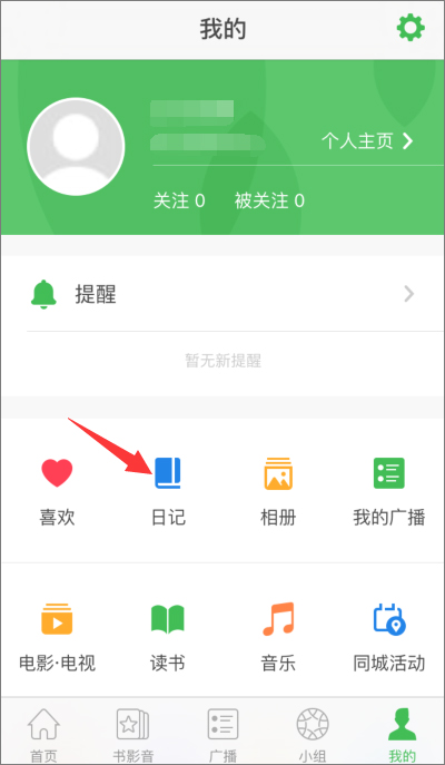 2、然后首先进入“我的”这一项。之后可以看到“日记”;