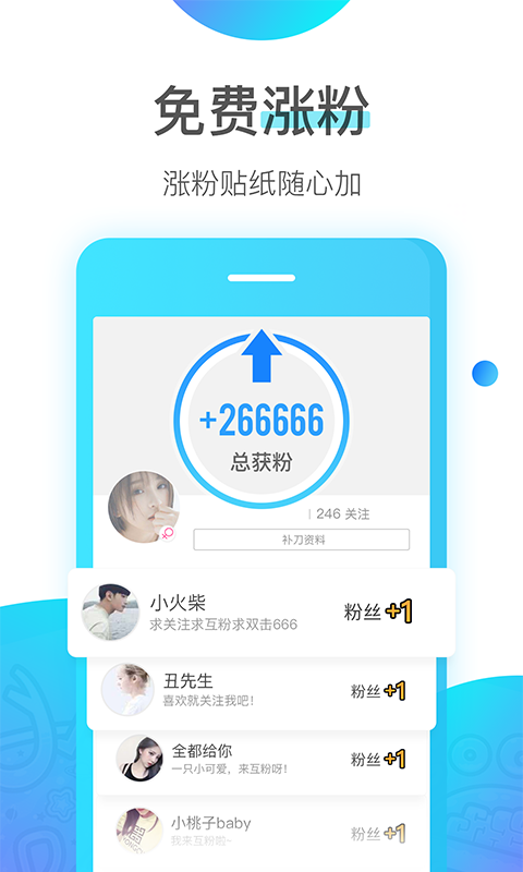 1、【免费涨粉 粉丝涨不停】 谁还没一个网红梦?上热门!被关注!补刀小视频就是你成名的舞台。免费涨粉神器贴纸,让你粉丝飙升当网红!