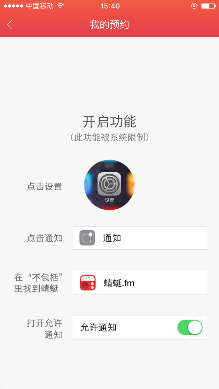 注:使用此功能需开启该应用的信息推送功能,若不开启则无法正常接收预约推送。