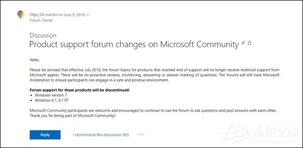 6月11日消息 众所周知,尽管微软已经开始大规模推送Win10四月更新,但依旧有不少用户使用着Win7/8.1/8.1 RT系统。但据外媒最新消息显示,微软近期在官方论坛中彻底停止了针对Win7/8.1/8.1 RT的技术支持!这究竟是怎么回事呢?