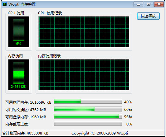 Wopti内存整理功能特点: