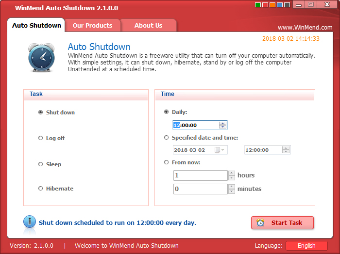 WinMend Auto Shutdown就是一款定时关机软件,该定时关机软件主要是能帮助大家设定时间对电脑关机,所以有需要的朋友赶紧下载吧!