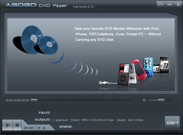 Agogo DVD Ripper 是个功能非常强大的DVD电影转换工具,它支持转换你所喜爱的DVD电影,输出到几乎所有的视频文件:XviD MPEG-4 AVI文件,MPEG(VCD,SVCD)视频,苹果iPod, iPod Touch , iPhone MP4视频,索尼PSP PS3 视频, 手机 3GP 3G2 视频以及黑莓各种视频,微软Zune播放器 支持的WMV/MP4 视频,PDA,Pocket PC视频,WMV8 WM9 视频, FLV 视频, RealMidia的rm,rmvb 视频文件等等。