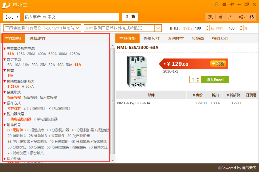 电小二是一款利驰软件研发的电气元件选型软件,电小二拥有多种电气元件,并有产品价格、外形尺寸、系列样本等让用户参考。电小二还具有快速选型、查价、找样本、上手快的特点,帮助用户快速选择合适的电气元件。