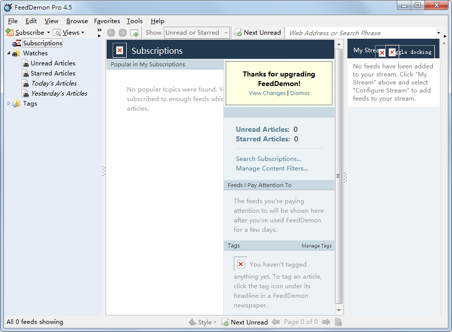 2、FeedDemon也具备共享、添加标签、监控关键词等功能来管理订阅内容,如果需要RSS客户端的话,FeedDemon是不错的选择,也能直接导入OPML 文件。