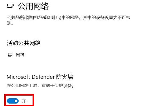 8、最后将“Microsoft defender 防火墙”下面的开关关闭即可。
